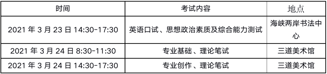 考生于2021年3月23日上午9:00-11:00携带本人以下材料至我院海峡两岸书法中心接受审查: