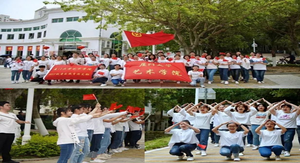 2019年恰逢五四运动100周年,为弘扬“爱国、进步、民主、科学”的五四精神,4月12日中午12时,厦门大学艺术学院17级音乐教育团支部全体同学在学生公寓举办纪念“五四”100周年快闪活动。此次快闪活动经过了院团委和17音教团支部的积极筹备,既发挥了音乐教育专业同学们的特长和优势,又传递了在新时代也要争做“爱国、进步、民主、科学”的青年人的核心理念。所有的节目都由17音教团支部自行组织编排。