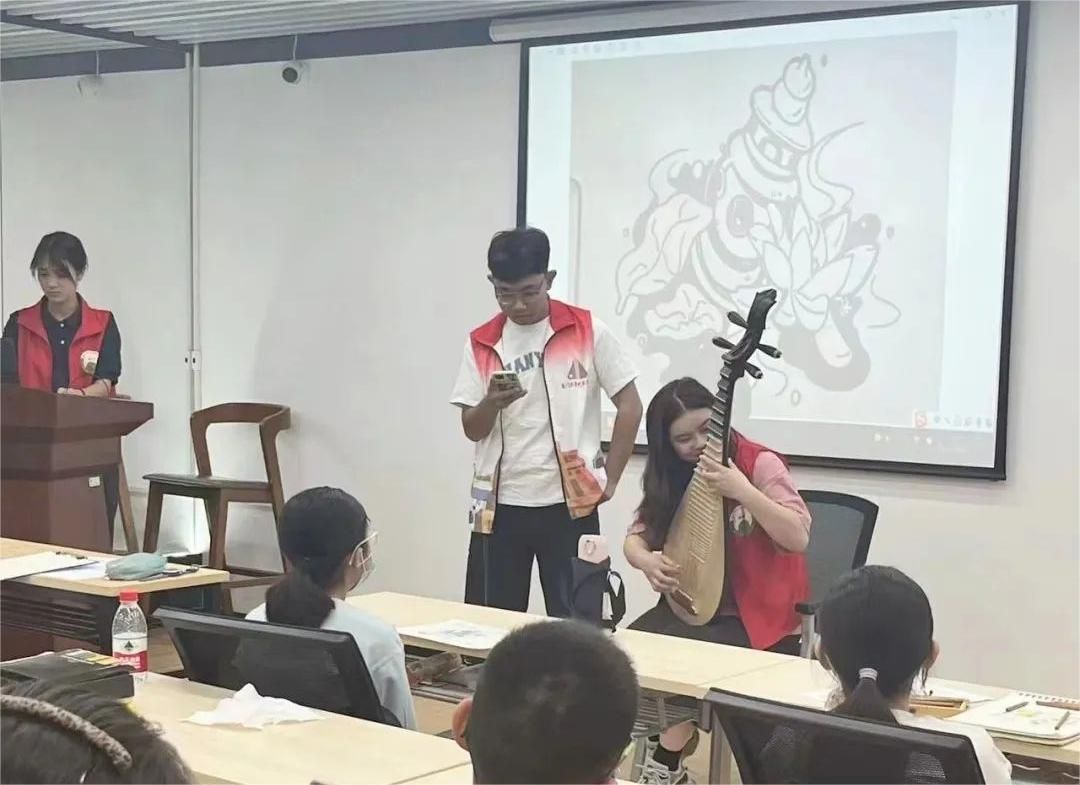 为了让学生们从民族特色中感受更多的乐趣,艺术学院的学子们以趣味的音乐与美术课交叉进行的方式,为他们带来了一次讲授理论知识的课程。