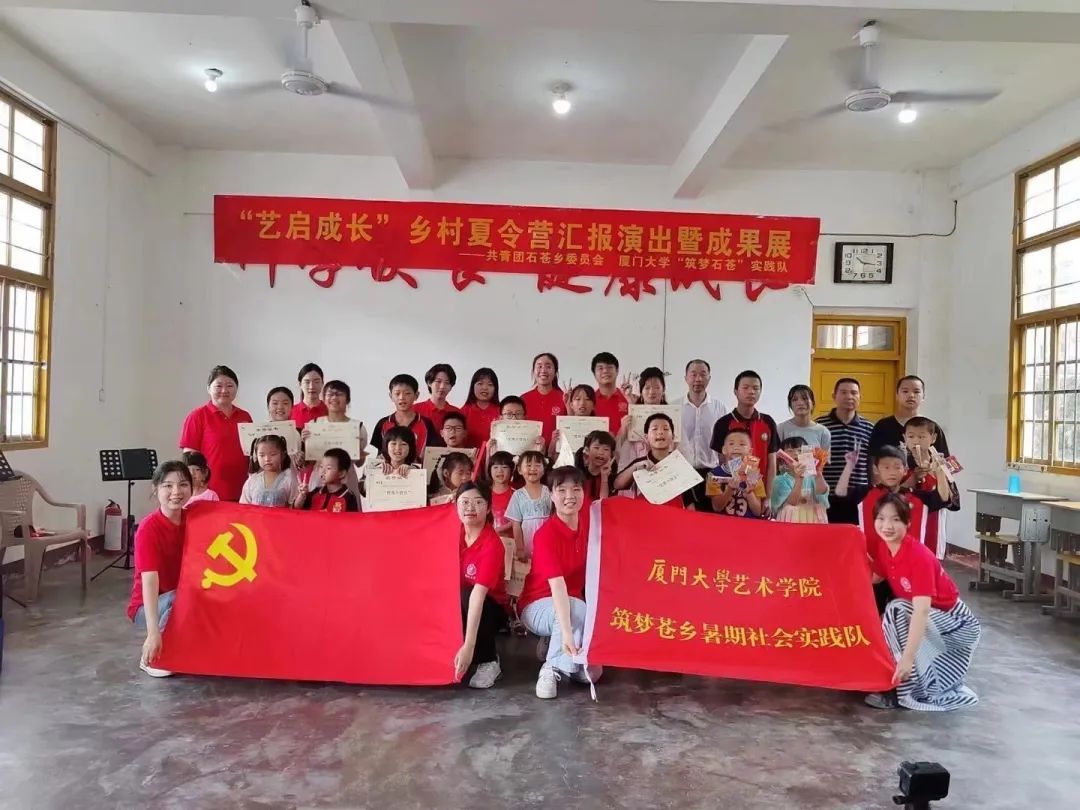 6月29日厦门大学“筑梦苍乡”实践队初次来到仙游县石苍乡石苍学校,认识了深山里一大群同样渴望着音乐、美术知识的小朋友。在长达一周的夏令营里,我们共同感受了党史课的伟大历程、音乐歌舞震撼人心、美术流彩传遍四海,感受着美育真切地带来的无数的欢声笑语。