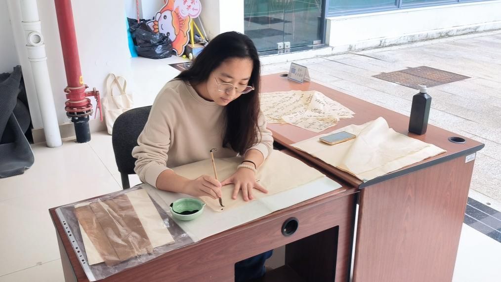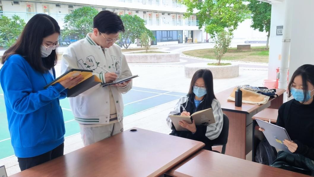 为深入学习宣传贯彻党的二十大精神,积极传承弘扬中华优秀传统文化,进一步引导同学增强文化自觉,树立文化自信,用艺术写好、绘好中国故事,12月4日上午,艺术学院2022级研究生在海韵9学习共享空间成功举办了“学习二十大,艺术进社区”主题实践活动。共有六名同学通过自愿报名参加了本次活动。