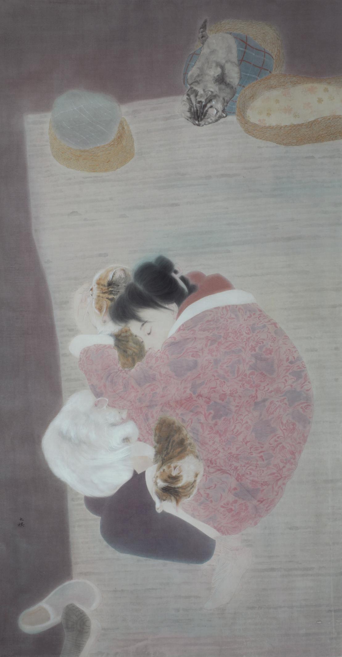 姚文祺/《依偎》/绢本设色/125cm*66cm