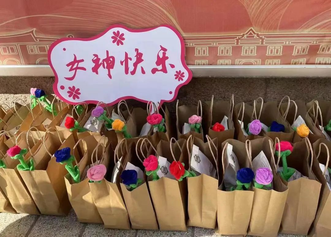 一大早,为了给女同胞们一个节日的惊喜,学院男老师们忙碌起来,为她们早早布置好活动会场,准备好了精致的礼品。