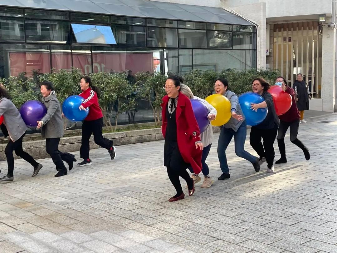 老师们你追我赶,欢笑声此起彼伏,她们有的步伐矫健,有的步调轻盈,有的走走停停……在比赛中感受到了节日的欣喜和奋斗的力量。