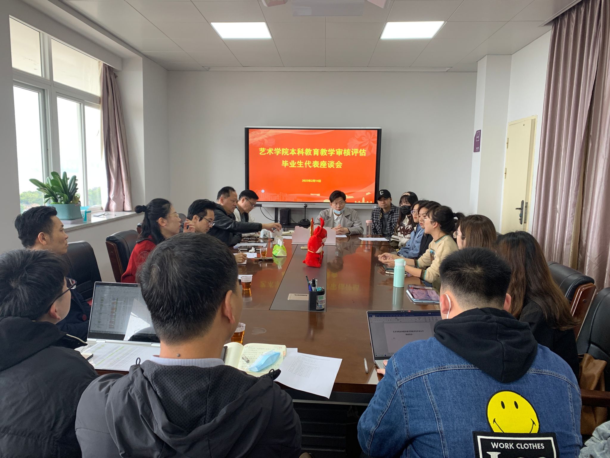 2023年2月14日上午,艺术学院在学院A411会议室召开本科教育教学审核评估毕业生代表座谈会,听取毕业生对本科教育教学工作的意见建议,倾听毕业生的心声。艺术学院院长刘赦,院党委副书记王艺宏、刘晓峰,副院长刘涛,美术系主任方广智,音乐系副主任(主持工作)杨绿荫、副主任郭伟,部分教研室负责人、辅导员、教学秘书,本科毕业生生代表出席会议。会议由刘涛主持。