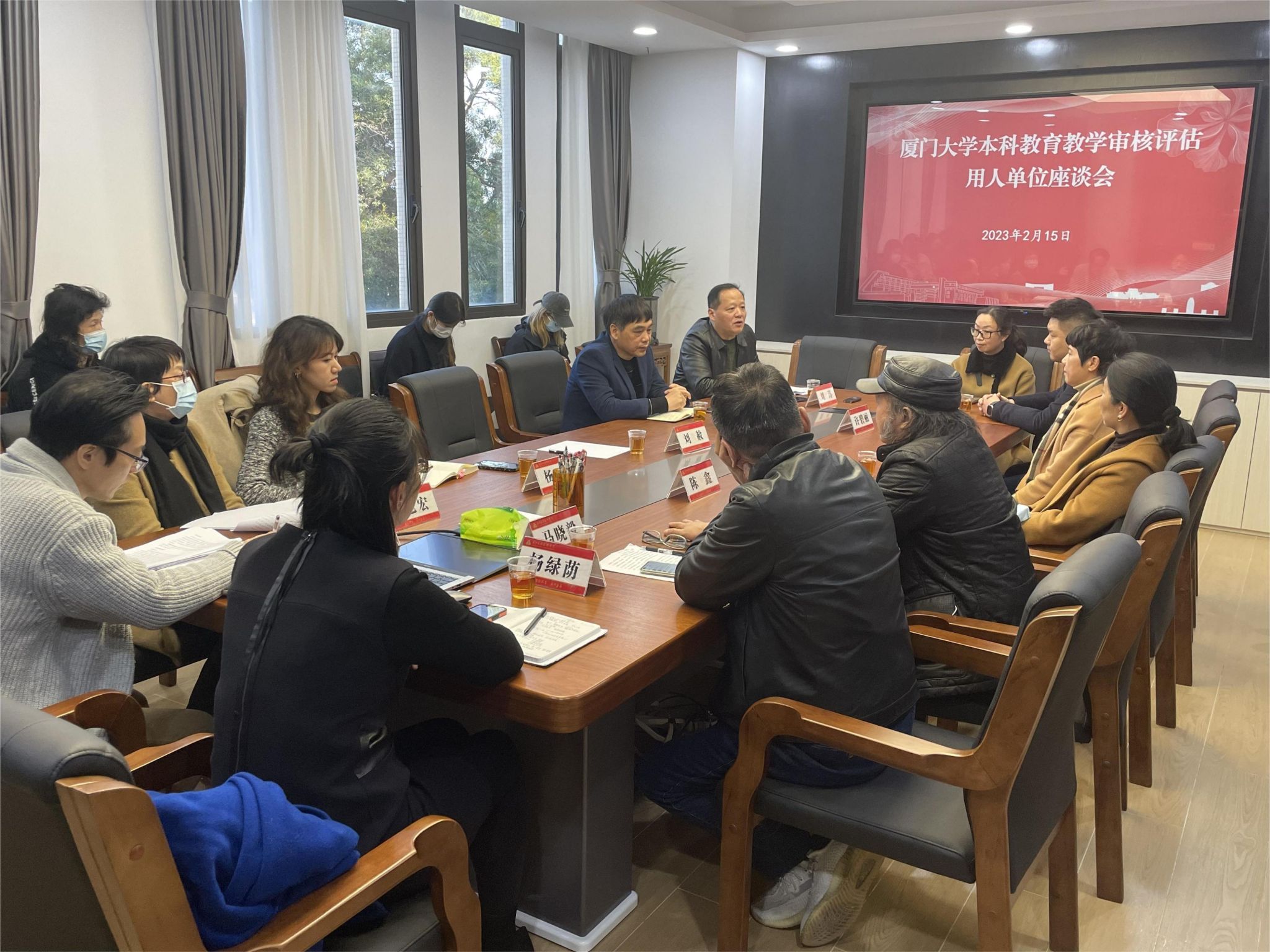 为深入了解社会对专业人才的需求,进一步提升我院人才培养质量,2月15日下午,艺术学院本科教育教学审核评估用人单位座谈会在书法中心顺利举行。学院邀请了思明区教育局调研员马晓毅、鼓浪屿钢琴博物馆馆长周晓芸、厦门沧江剧院总经理金炜楠、中国唱片博物馆馆长许碧丽、厦门歌舞剧院副院长许君、厦门市文化馆副馆长陈鑫、厦门市海沧教师进修学校党支部组织(纪检)委员、教研员颜贻寿等用人单位负责人代表参会。艺术学院党委书记张必华,院党委副书记王艺宏,副院长刘涛、杨琳,美术系主任方广智,音乐系副主任(主持工作)杨绿荫等出席会议,会议由刘涛主持。