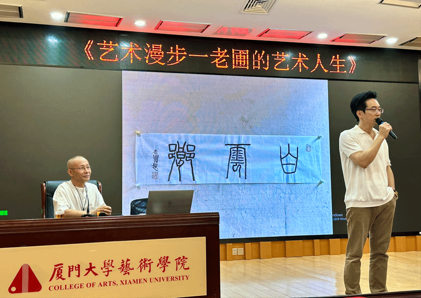 老圃先生寄语厦大学子,呼吁在全球化语境中坚守文化身份,避免“中西结合”的表面化,转而以“中西互鉴”的视角发掘中国艺术的独特价值。
