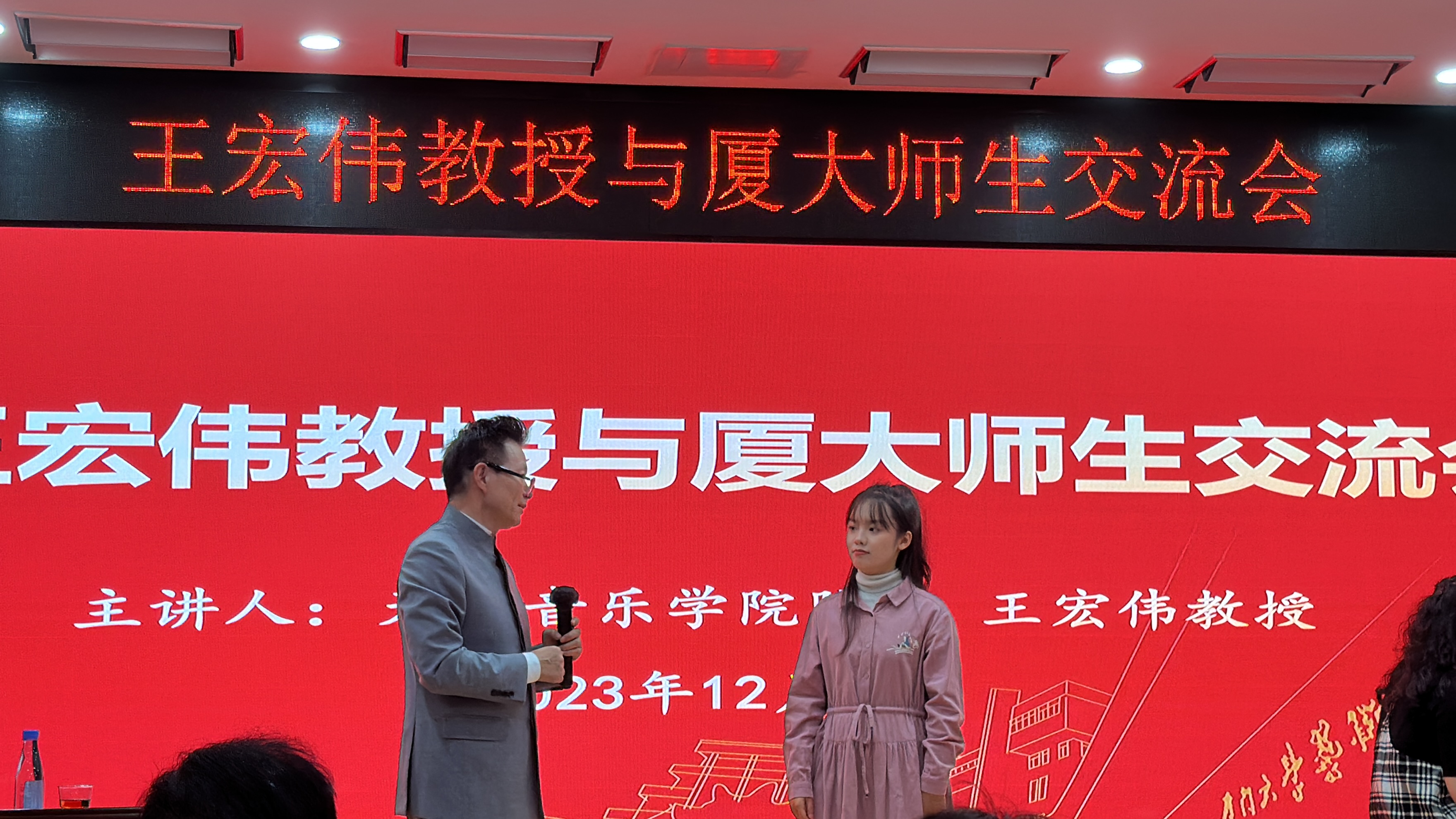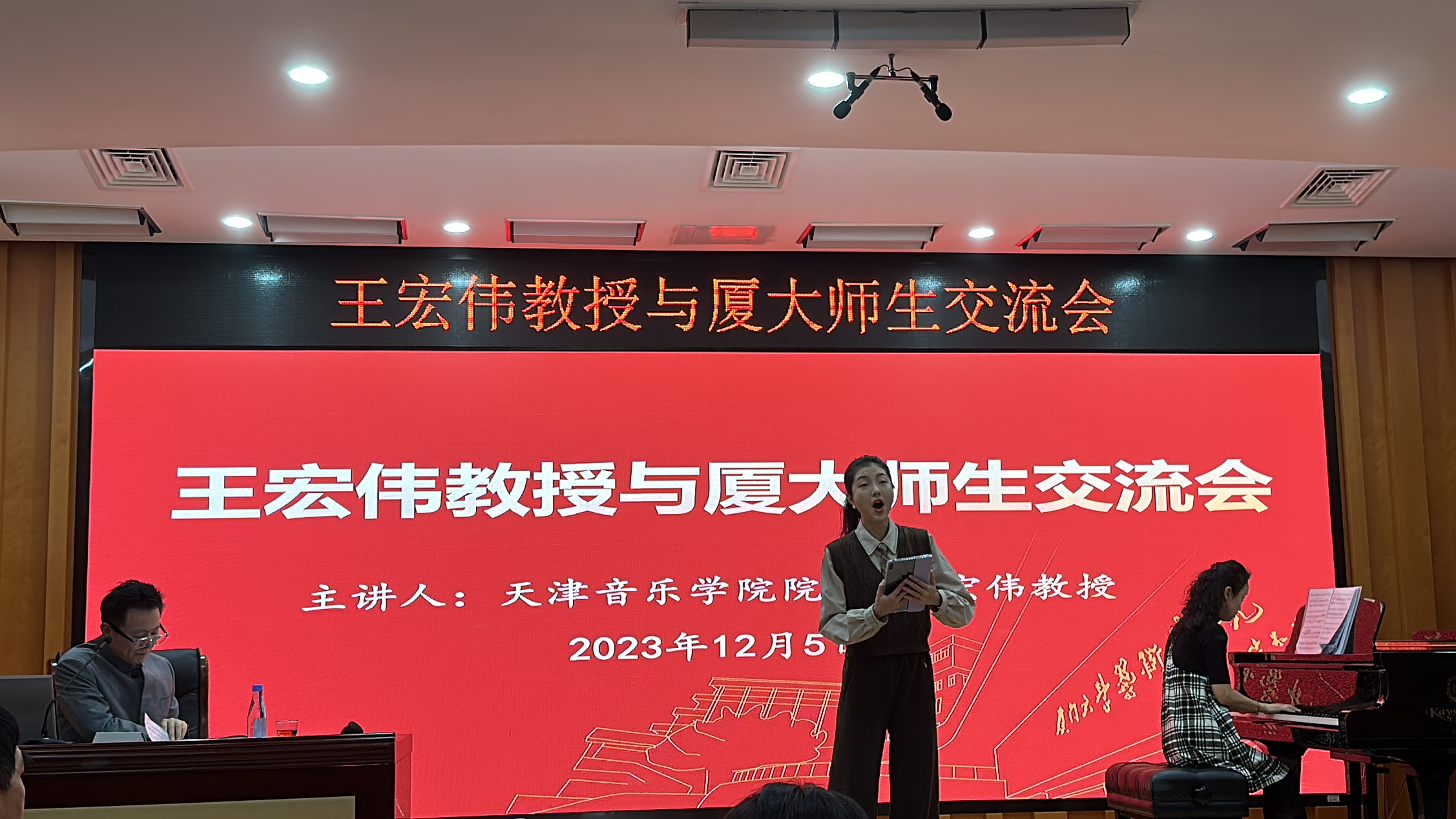 12月5日下午,著名男高音歌唱家、天津音乐学院院长王宏伟教授走进厦门大学艺术学院,与师生进行深入交流,并指导学生演唱技巧。此次交流不仅进一步精进了学生的专业技能,更为我院音乐系的师生提供了与业界资深人士深入沟通的平台。