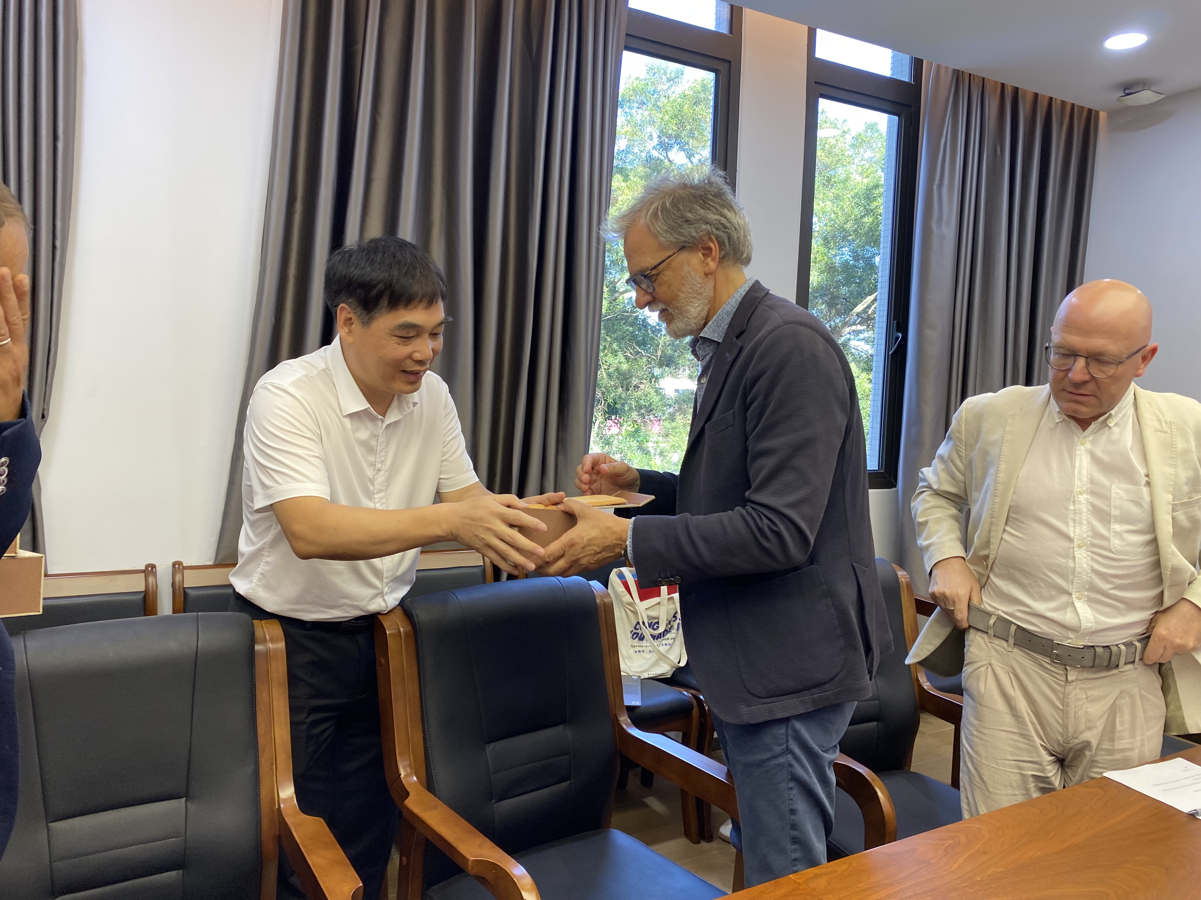 会谈后,张必华代表艺术学院向卢西亚诺·马萨里一行赠送中国陶笛及美术系师生作品集,双方一致表达了对未来两院建立合作、续写友谊新篇章的期待。