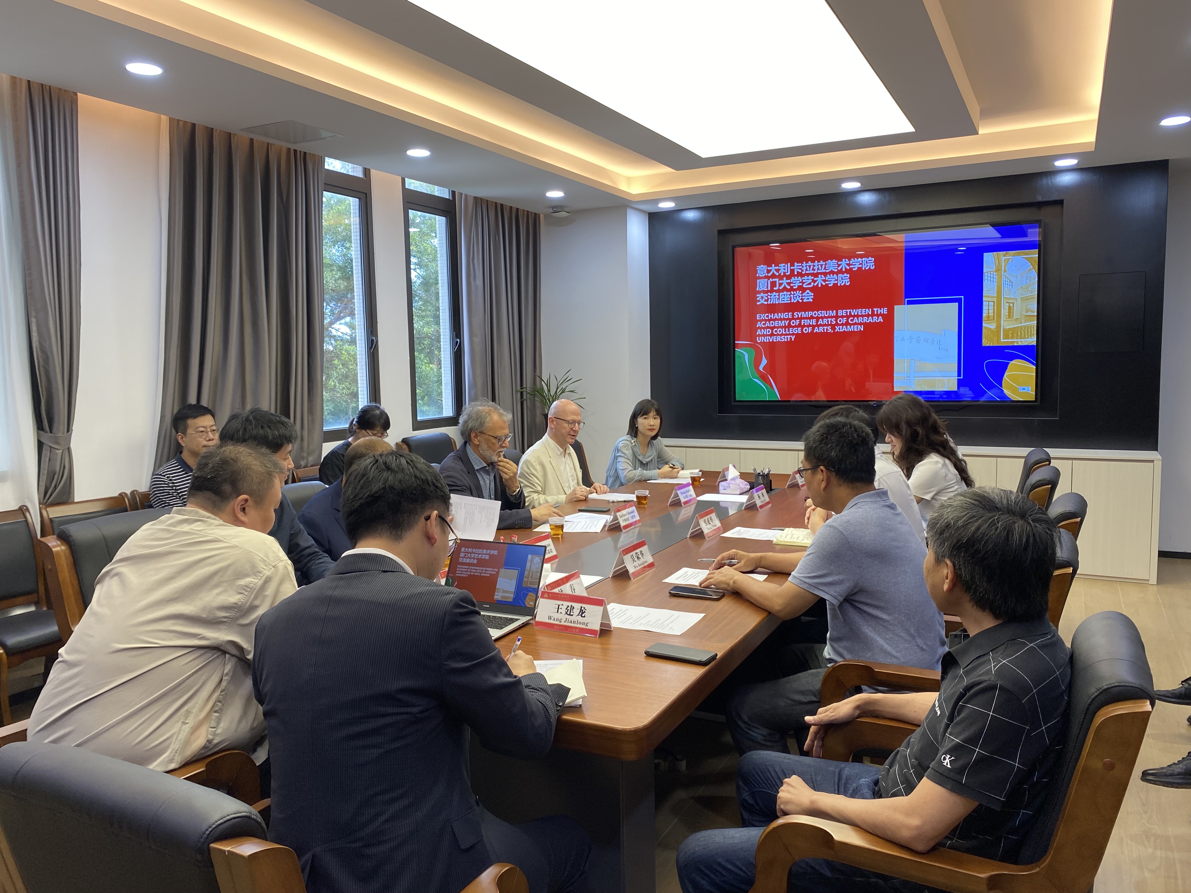 2023年7月4日下午,意大利卡拉拉美术学院院长卢西亚诺·马萨里、意大利卡拉拉美术学院中国区项目负责人法比奥·西科尔蒂诺、意大利宝龙语言协会会长尼古拉·宝龙一行访问厦门大学艺术学院,院党委书记张必华、常务副院长吴荣华教授、副院长杨琳等会见了来宾,双方就学科建设、人才培养、合作深化进行交流会谈。