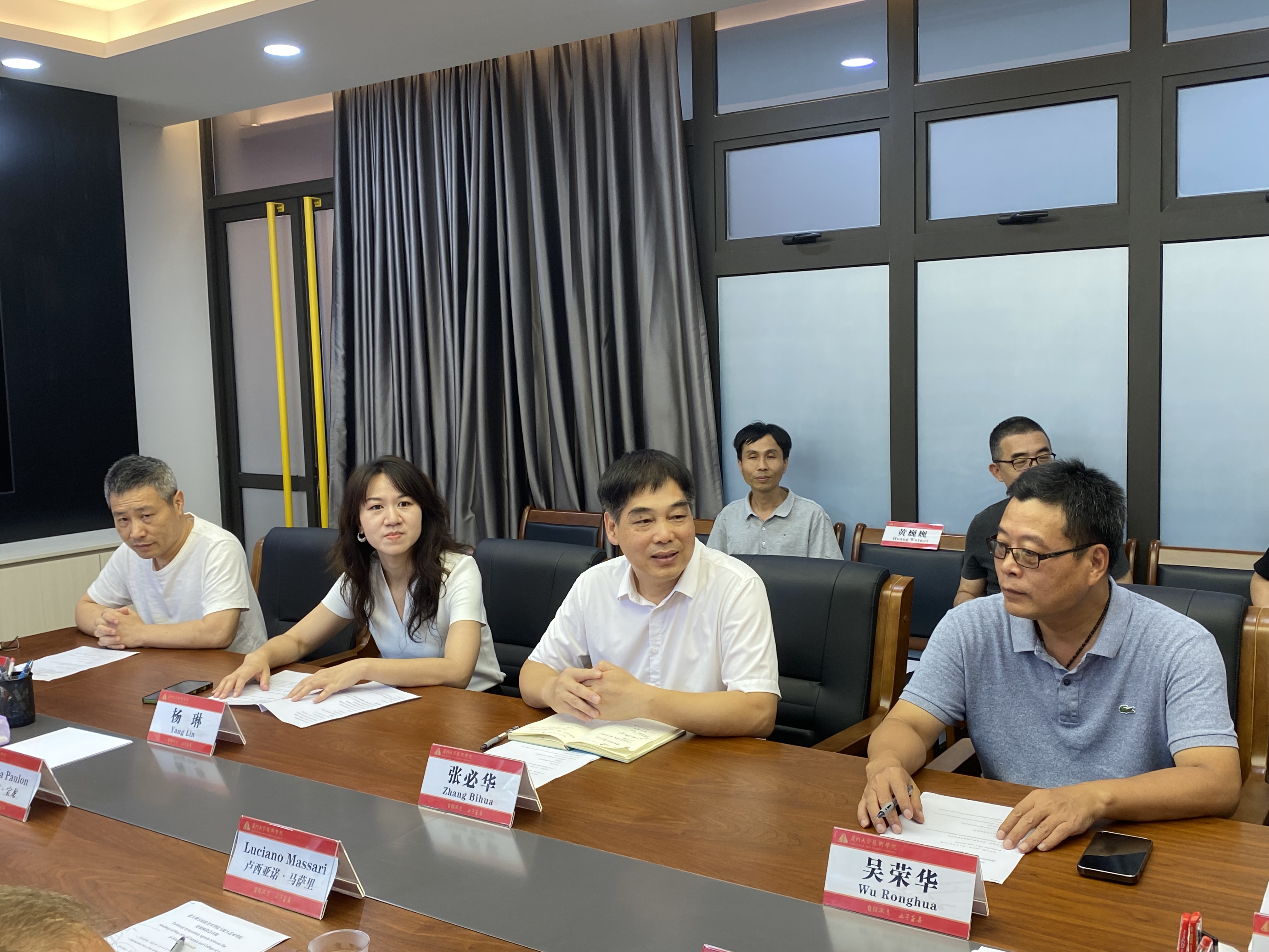 翻译陈闰、外文学院意大利语负责人曾德龙、校方代表王建龙、吴隐子、艺术学院美术系雕塑教研室主任王卫助理教授、林春教授、王海涛副教授、黄巍巍助理教授等参加交流座谈会。