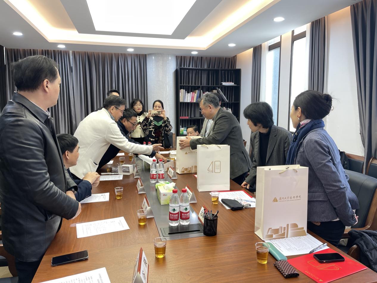 刘赦院长代表学院对森达也副校长一行表示欢迎。刘赦介绍了厦门大学艺术学院在办学方面的相关情况,希望未来两校能继续加强交流,共同探索更多领域的合作机会。